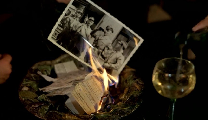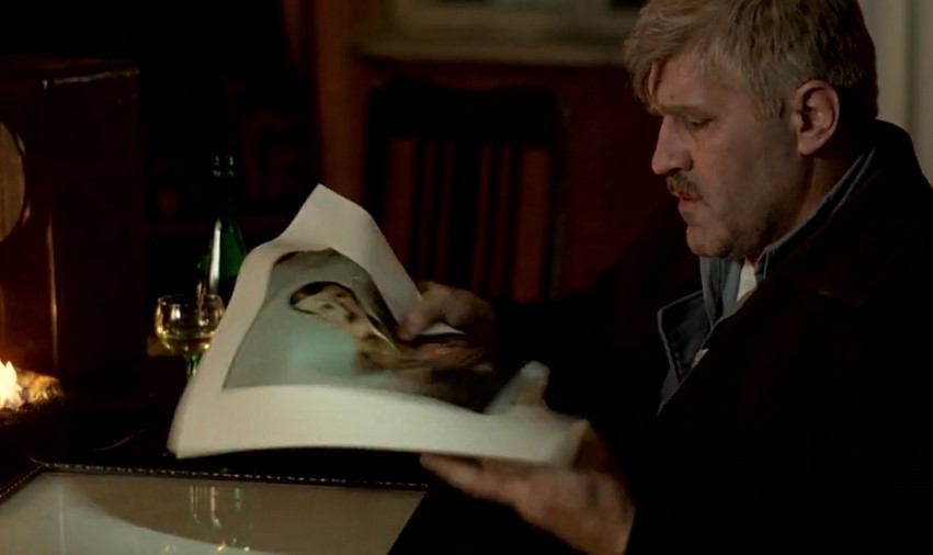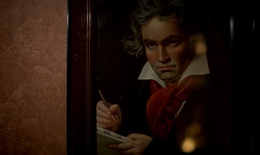 战争已近尾声,苏军开进但泽,马策拉特烧掉纳粹照片,取下并撕毁希特勒画像,挂上贝多芬画像。