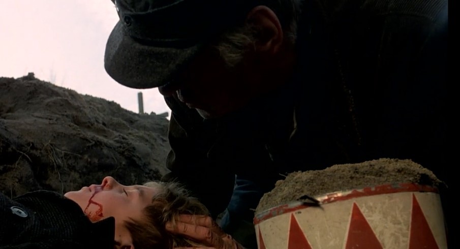 父亲的葬礼上,奥斯卡说着“我该还是不该?你已经21岁了,我该,我一定要长大!”,接着将鼓扔入墓穴中,正在这时,刚好被弟弟扔来的石头砸晕,也跌入墓穴中,被救起后,他开始长高了。