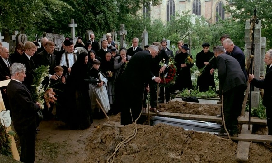 火车站,玛丽亚带着奥斯卡和弟弟爬上了向西方开行的列车,但泽的田野上年迈的外祖母孑然独行,火车喷着黑烟,消失在地平线上。