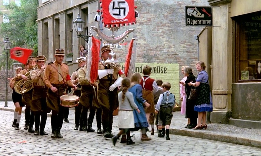 整部电影看完,充满了荒诞、夸张的表演和情节,让人感受导演对命运所作的深层次思考,一窥成人世界的虚伪肮脏,看到了纳粹德国的丑恶嘴脸,看到了战争之下小市民的众生相。