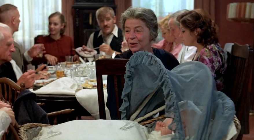 玛丽亚的孩子出生,一家人开怀畅饮,恭喜奥斯卡有了弟弟,奥斯卡却称其为自己的儿子,并且说3岁时也送他一个铁皮鼓,也会告诉他如何才能不长大。