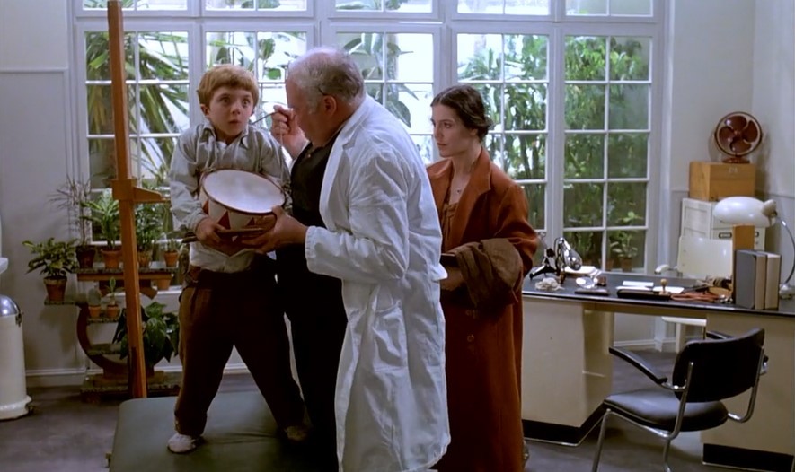 因此,妈妈带奥斯卡去医院检查,医生想拿走铁皮鼓,奥斯卡又开始尖叫,震碎了医院里的各类玻璃器皿, 医生震惊之余,还要深入研究,写学术报告。