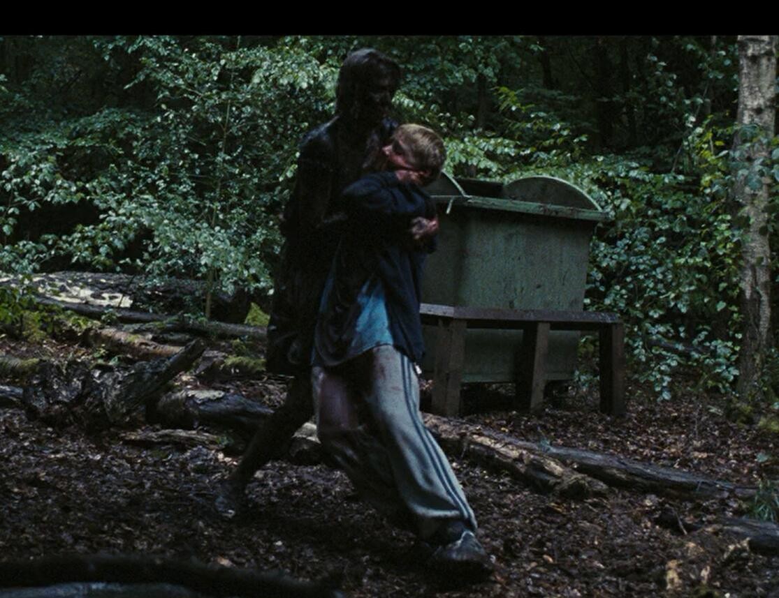 珍妮在这过程中拿到了车钥匙,两个人急忙开车离开。未成年一路跟踪,史蒂夫由于不熟悉森林路,不小心开车撞上了树,结果史蒂夫被树卡住,让珍妮离开。到了第二天,史蒂夫被这群未成年人绑住,珍妮在远处观察。