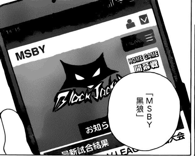 男主角日向翔阳所在的俱乐部MSBY黑狼(BJ),已知队员有:队长明暗修吾(4号 副攻手)、阿德里亚-托马斯(9号 副攻手)、木兔光太郎 (12号 边攻手)、佐久早圣臣(15号 边攻手)、宫侑(13号 二传手)、犬鸣(6号 自由人)、日向翔阳(21号 强力接应)以及没有首发登场的同为强力接应的10号球员奥利弗-巴恩斯。