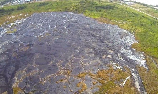 据了解,在彼奇湖的中央地区,就有一块很是柔软的土地,大量的天然沥青不断从块土地中涌出,是彼奇湖沥青的来源。