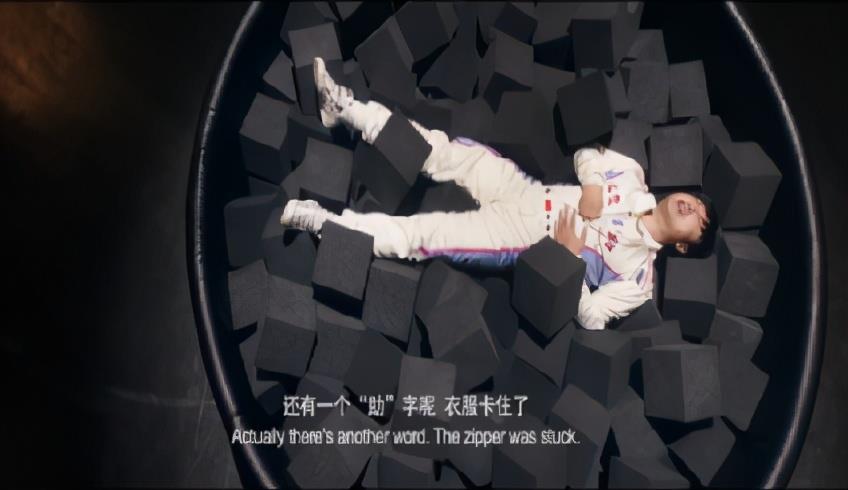 赛车服上有拉链,沈腾在舞台上“求赞助”时,韩寒就让他的拉链卡住,制造笑点,最后只露出了“求赞”两个大字。当台下观众和对手一起为张驰点赞时,掉进深洞的他却只想再来一次。