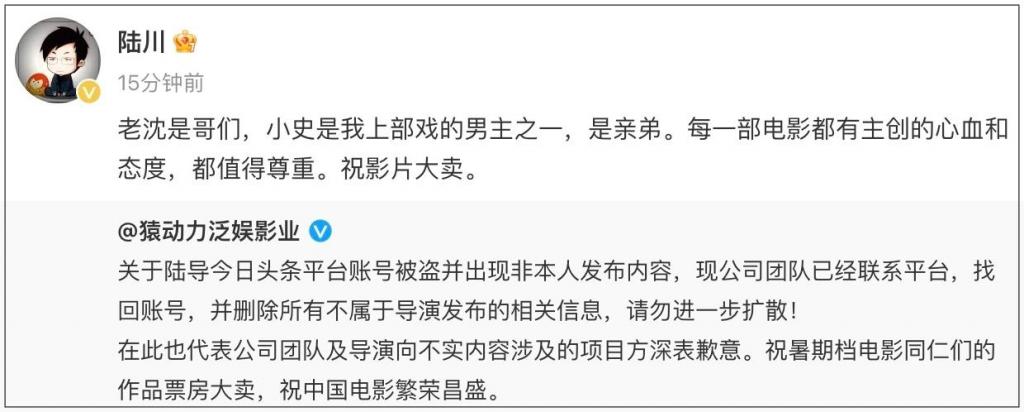 导演陆川在头条号发布的该短评一出,迅速占据微博热一。