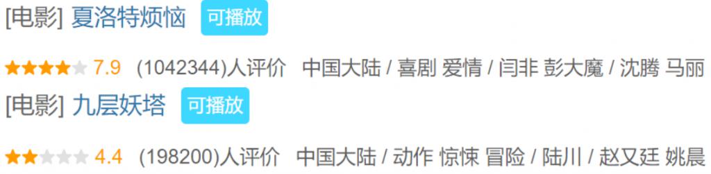 我们很容易在这种对比中,直观地看出大众对某部电影或某位演员、导演的心理感受。