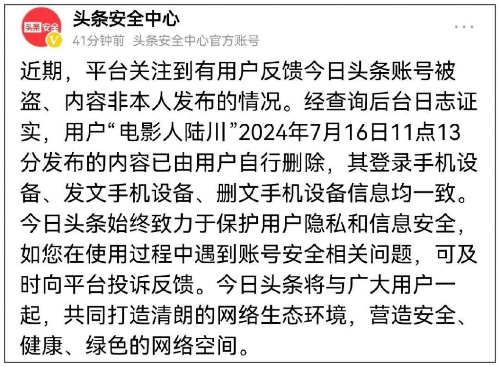 官方回应称" 非本人操作 "" 被盗号 "。