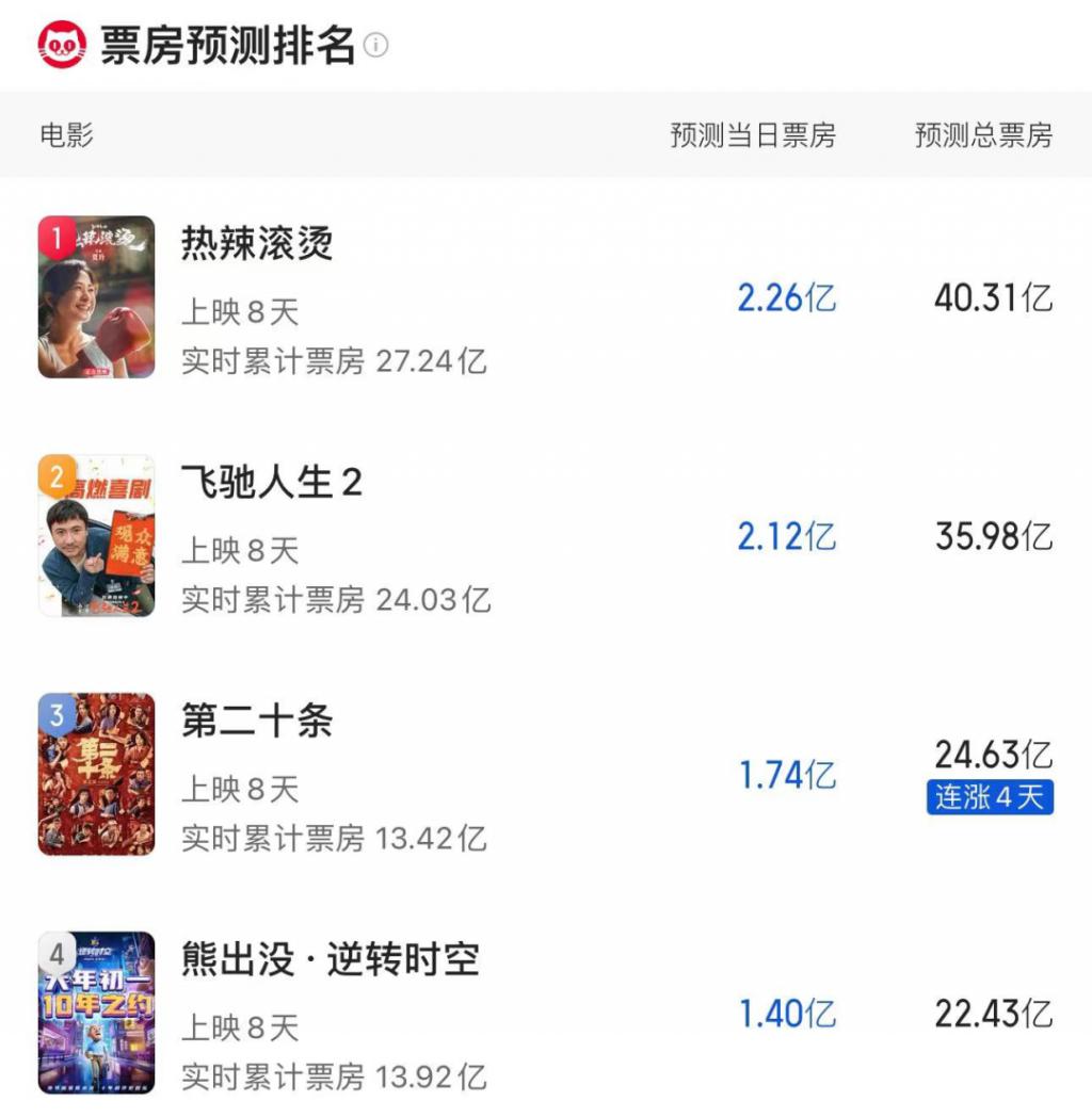 其中,贾玲的《热辣滚烫》领跑,韩寒的《飞驰人生 2》紧追不放。