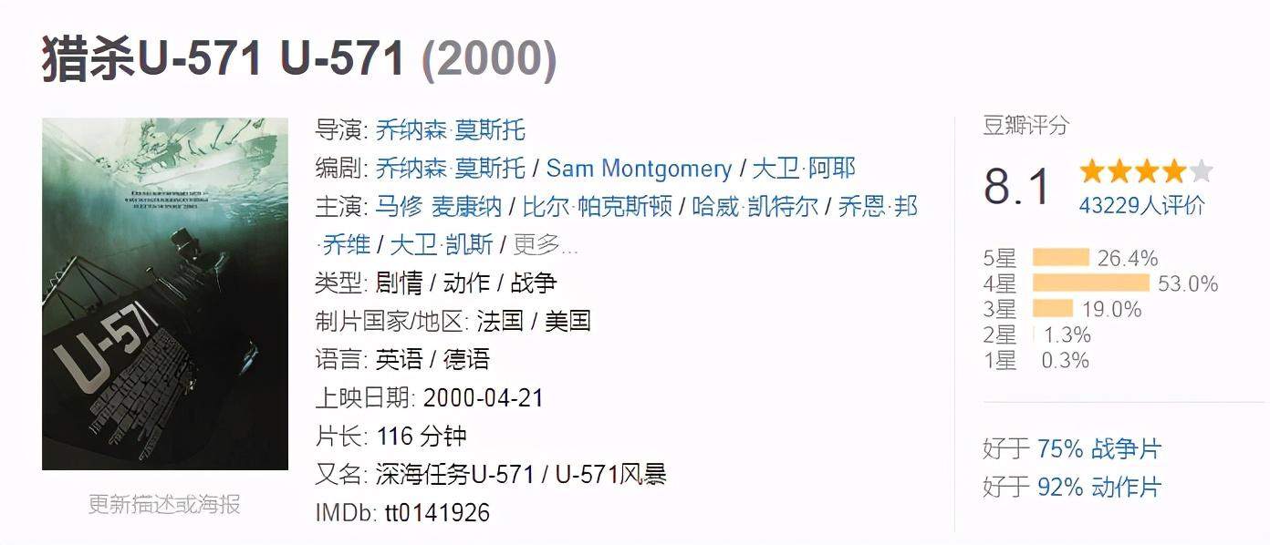 乔纳森•莫斯托算是很懂军事战争历史的导演了,好莱坞拍的经典潜艇戏,好多演技派型男,马修,比尔,哈威,大卫凯斯等。