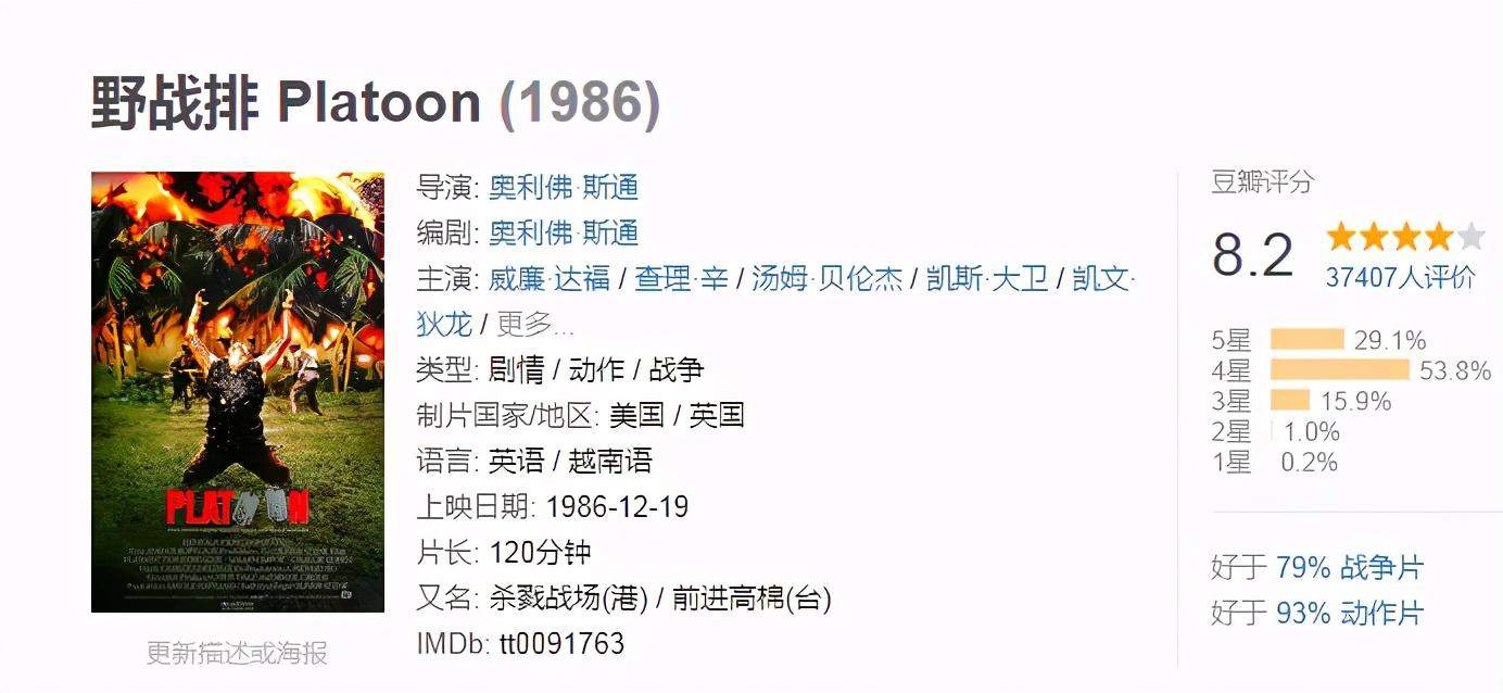 很多人都觉得在越战片里这部有点非主流,但又说不出奇怪在哪里,实际上奥利弗斯通很聪明的选择了一个绝对的小结构方式来阐述战争。