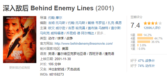 航母上的战机起飞情节以及空战的片段很是吸引眼球,此外丛林逃亡以及狙击手的追击也是让人精神紧绷。