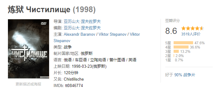 这是俄罗斯人自己拍的关于第一次车臣战争的电影。讲述了俄军一座野战医院惨遭车臣恐怖分子袭击的故事。