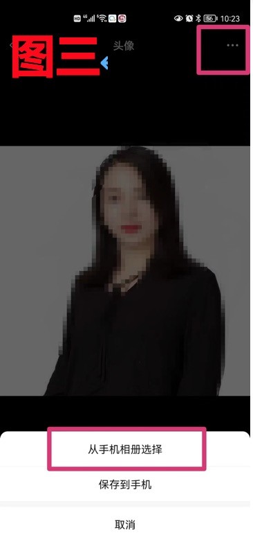 3、点击【右上角三个点】,再点击【从手机相册选择】(如图三)