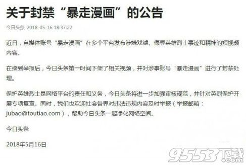 今日头条封禁“暴走漫画”