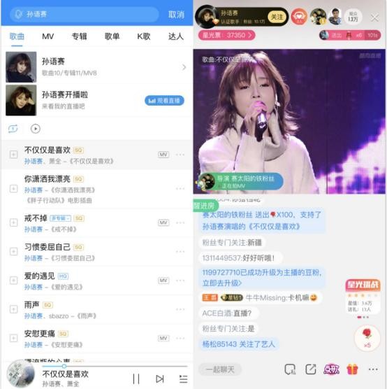 直播期间,陆续有不同的网友进入语赛直播间,被语赛回复的粉丝都纷纷表示“被看见消息好激动!”自从酷狗音乐与酷狗直播实现互通后,粉丝在听歌界面就能收到歌手开播的提示,与歌手近距离互动变得越来越方便,还增加了歌手的人气,实在一举双得!
