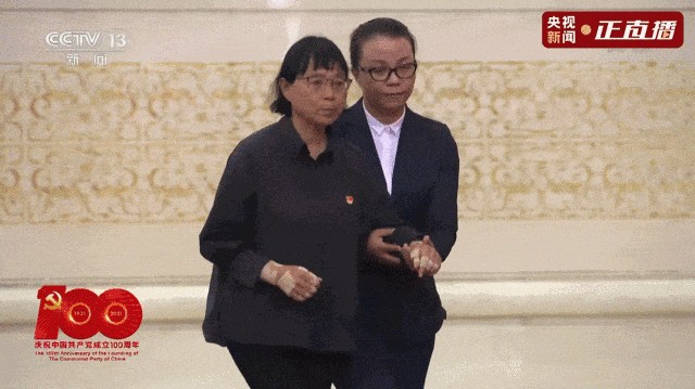 在2021年7月1日,张桂梅在万众瞩目中,胸前挂着“七一勋章”,登上了天安门城楼。