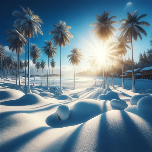 它的回答是:想象海南岛下雪的场景,我们会看到这个通常温暖的热带岛屿被白雪覆盖。沙滩上的棕榈树挂满了雪花,阳光透过云层照射在闪亮的雪地上。当地的居民和游客可能会感到惊奇,穿着不同寻常的冬装在雪中玩耍。海边的风景与雪的对比会形成一幅非常独特和迷人的画面。让我们通过图像来展现这个奇妙的场景。