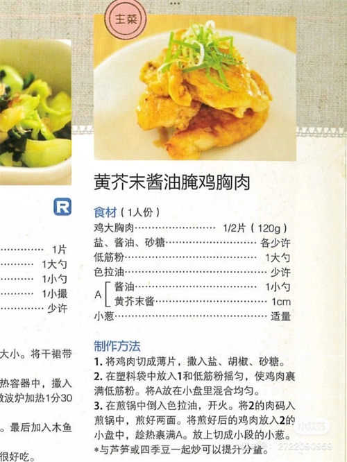 ②烹饪书上学的减肥食谱《黄芥末酱油腌鸡胸肉》!