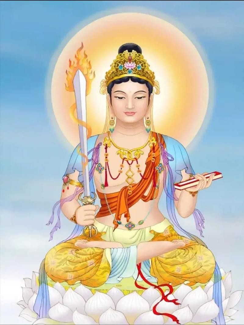 虽然文殊菩萨并非佛,但他在佛教中的地位极高,甚至被尊为“七佛之师”。文殊菩萨是佛教中智慧的象征,他手持慧剑骑乘青狮,象征着他能斩断一切迷惑。