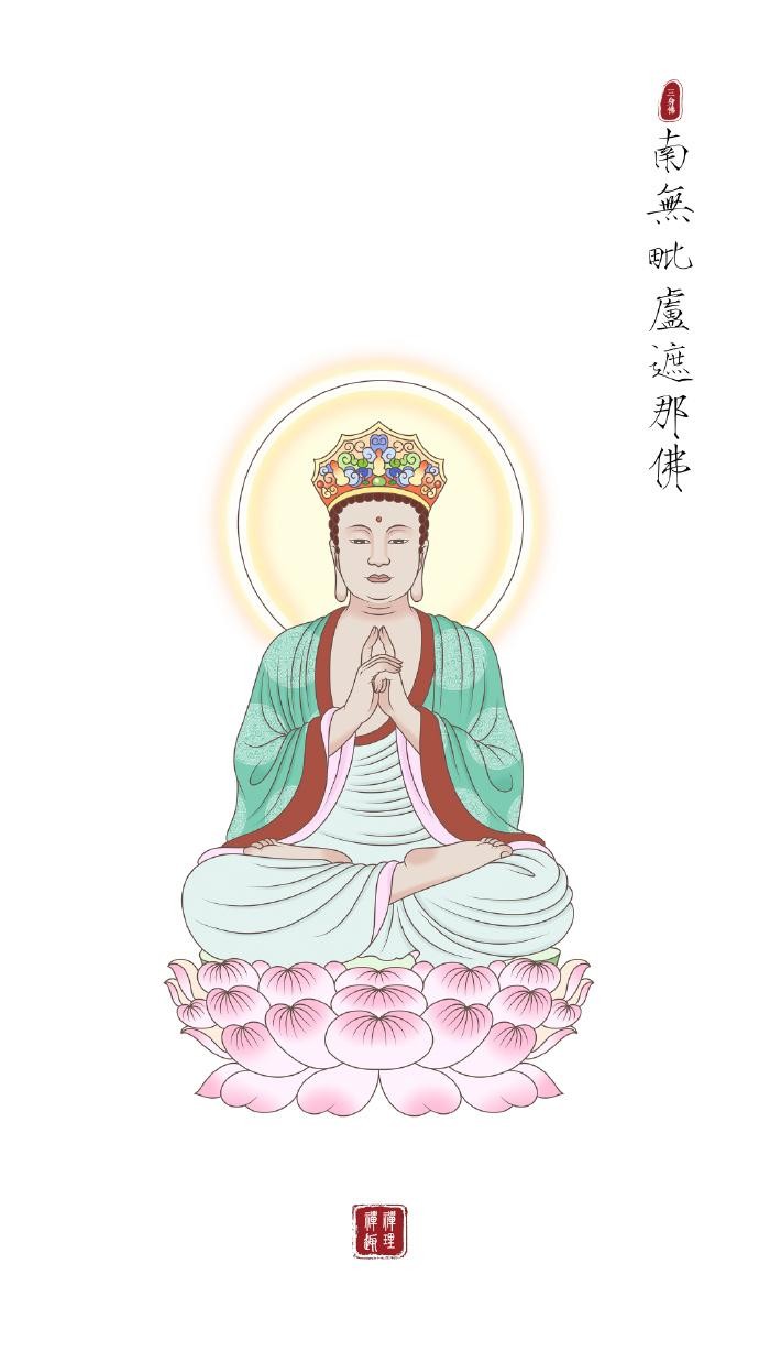 毗卢遮那佛,又称“大日如来”,毗卢遮那佛代表着佛教真理的凝聚,是佛教密宗修行中的重要对象。他的形象通常被描绘为头戴五佛冠、手持金刚杵,象征着他具有无上的智慧。