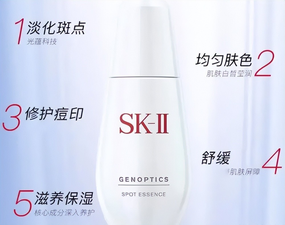SK-II的淡斑产品以其独特的成分和卓越的效果而广受欢迎。其明星产品SK-II全新精研祛斑精华液采用了品牌特有的Pitera酵母发酵产物,能够有效改善肌肤暗沉,淡化色斑,同时提升肌肤的紧致度和弹性。