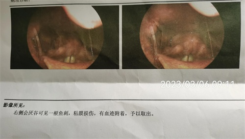 3分钟左右,医生说,看到刺了!在右侧会厌谷。