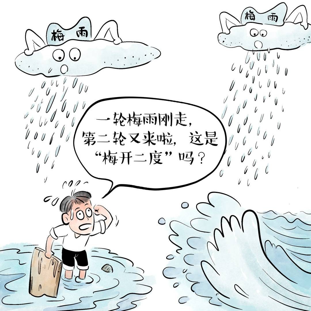 进入梅雨期后,第一个雨期确认结束,出现梅雨期中断,随后又出现持续性降水,进入第二个满足条件的雨期,称之为“二度梅”。1998年长江中下游就曾出现过二度梅,持续降雨使得经济损失惨重。