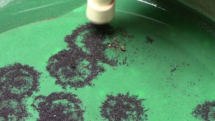 这消息一经发出,不少人就坐不住了,赶忙拿起空心铁棒在河床上滚动摩擦了起来。果然,没一会铁棒表面就附着上了一层黑色的磁铁矿颗粒。