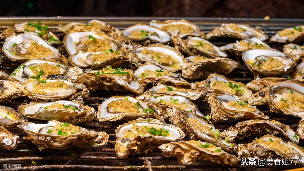 生蚝:生蚝我们最常见就是烤生蚝,一到夏天,街边烤生蚝就特别多。将制作好的蒜蓉放在生蚝上,用炭烤亦或是放入烤箱烤;有的直接将生蚝清蒸,清蒸熟后再打开壳,蘸酱吃,特别鲜甜美味。