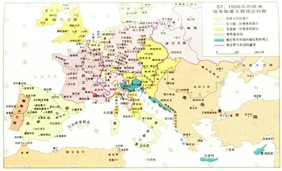 1556年的欧洲哈布斯堡王朝统治时期地图