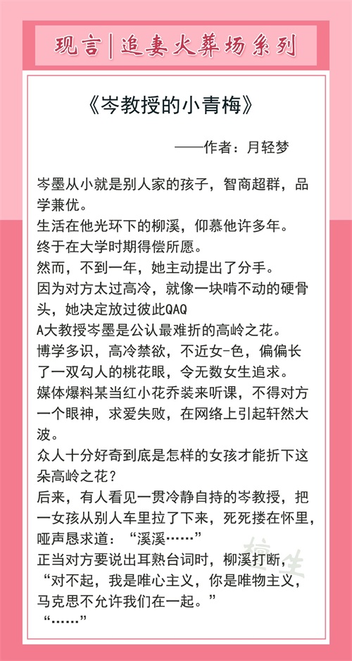 五本「追妻火葬场」言情推荐,男主前期高冷后期卑微,追妻苦兮兮