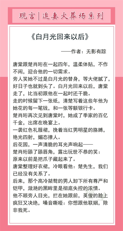 五本【追妻火葬场】的都市情缘小说推荐,献给喜欢阅读的书友们!