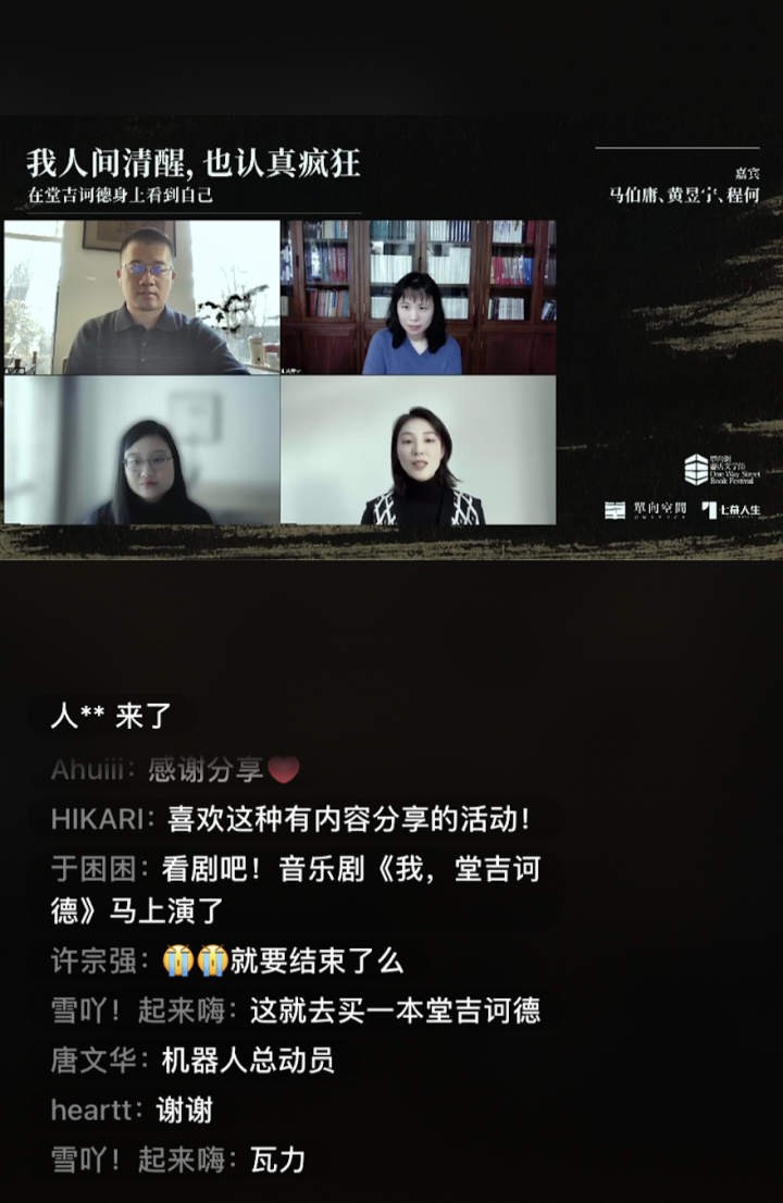 12月4日下午,以「白日梦与夜航船」为主题的第七届单向街文学节,首场活动在杭州单向空间举办。马伯庸、黄昱宁、程何三人的“我人间清醒,也认真疯狂:在堂吉诃德身上看到自己”对谈,因为疫情原因在线上举行。