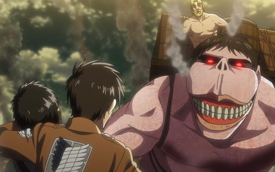「超大型巨人」(超大型巨人):身高为60 公尺。外表没有皮肤覆盖,因体型巨大所以动作相当迟缓。可以藉由燃烧肌肉组织来排放超高温的蒸气,使得立体机动装置无法发挥作用,并灼伤甚至杀死敌人,也能利用变身时产生的能量引起大范围的爆炸。