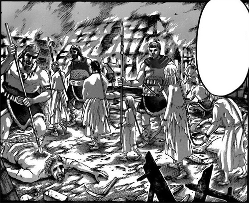 我们知道关于《进击的巨人》中「巨人的由来」是在故事发生的2,000 年前,残忍好战且冷漠自私的「初代弗利兹王」,在征服了「始祖尤米尔」所属的部落之后,强制把幸存下来的俘虏变为奴隶,并割去他们的舌头(始祖尤米尔也在其中)。某次因为饲养的猪跑掉了,认为是奴隶们把猪放走了,要求奴隶们自己坦白,否则就每个人再挖去一只眼睛,借此胁迫奴隶,最后奴隶们指认了始祖尤米尔,初代弗利兹一方面处罚了始祖尤米尔,另一方面却也假借要放始祖尤米尔自由,实际上却把始祖尤米尔当作猎物还挖走了尤米尔的左眼,和手下们玩起狩猎游戏,然后见到始祖尤米尔初次变成巨人的瞬间。由于始祖尤米尔并没有反抗或逃跑的念头,最后仍回归艾尔迪亚部落,从此受到初代弗利兹王的利用。