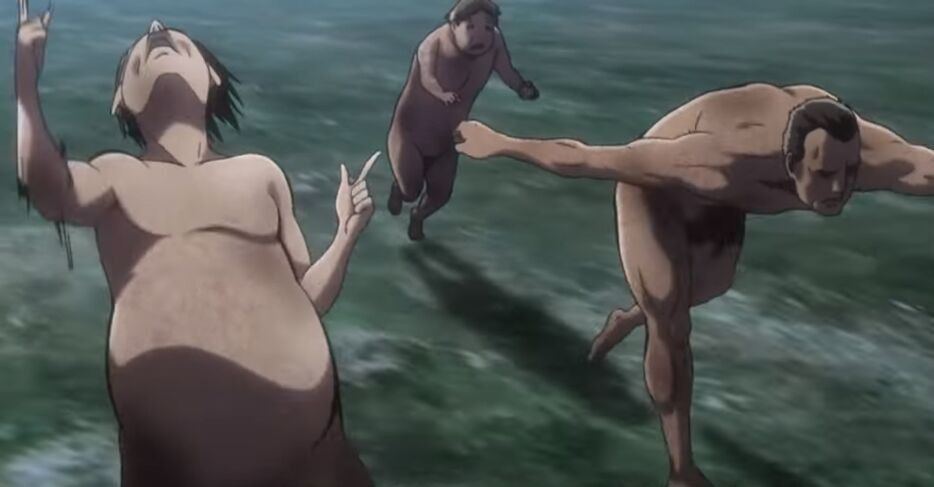 「女巨人」(女型の巨人):身高为14 公尺。与其他巨人相比多了女性的乳房。具有高机动力以及持续力,能够短暂硬质化局部部位,硬度极高拥有特殊能力「吼叫」,能够吸引巨人啃食自己。