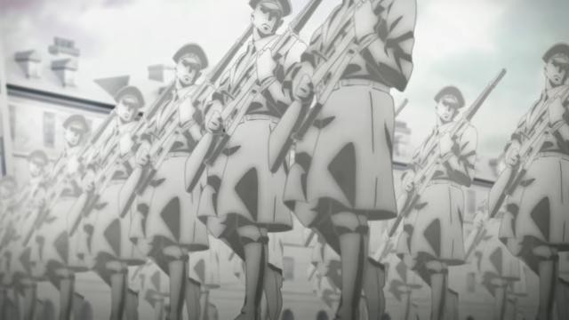 从「艾尔迪亚帝国」手中重新复国的「玛雷帝国」则是以「纳粹德国」为原型,不仅整体的形式,连玛雷人对待没有移居到帕拉迪岛的艾尔迪亚人的方式,也跟纳粹德国人二战时对待以色列犹太人的方式如出一彻!
