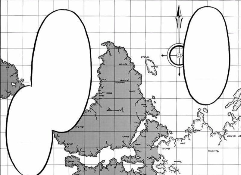 除了基本的「巨人设定」外,再来就是《进击的巨人》中对「整个世界」的设定!首先《进击的巨人》的世界其实就是「现实世界的颠倒」,例如在作品中出现的「世界地图」,其实就是真实世界「上下左右颠倒」后的结果,所谓的「玛雷帝国」的领土就是整个「非洲大陆」;而帕拉迪岛对称著「马达加斯加」;与「玛雷帝国」真正敌对的「中东联合国」则包含了现实世界中阿拉伯半岛、土耳其、中亚等区域。