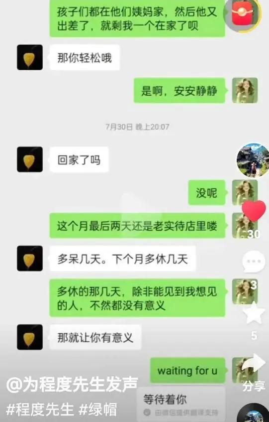 陈思月在海南玩了整整12天,回到长沙后,备注为fly的人给陈思月打来微信电话。一般来说,很多人的微信都会备注对方名字的,当然也有些人喜欢保留着网名。但是作为多年夫妻来说,对方有什么朋友基本上也是了解的,一开始程先生以为是哪个朋友给她打微信,并没有很在意。因为妻子回到家后,也没有什么异常的地方。
