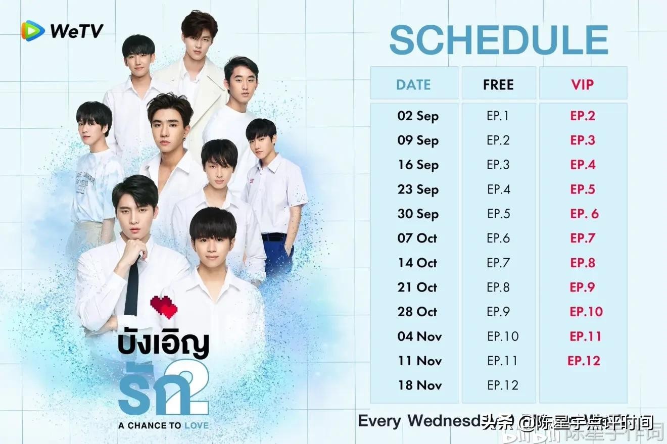 泰剧《不期而爱2 / A Chance To Love》即将于2020年9月2日今晚开播(每周三20点 WeTV放送)。泰剧《不期而爱》第二季演员包括: 洪天逸Mean,林乐杰Plan ,王俊勇Perth ,周浩德Title ,南思睿Earth,陈瑞书MarkSiwat ,陈智霆Gun 等等。