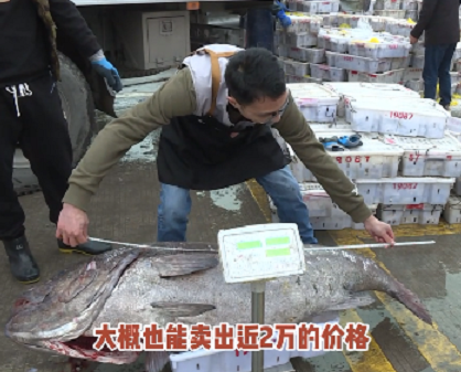 据了解得知,这条鱼才被运到码头不久,就被人订购了。而它的价格也是出乎了许多人的想象,有渔商表示,至少能卖到了2万元。