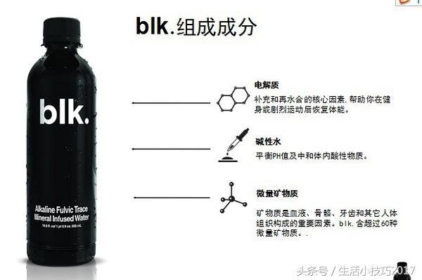 广告是如何宣传的呢?blk. 富含60种以上的矿物质及微量元素,钙、铁、锌、碘、硒等,为人体提供的大部分养料,是人类的生命之水。是一种有机的天然电解质,帮助身体在运动之后补充水分,快速有效的恢复体能。blk. 可以帮助人们更好的转化食物中的各种矿物质及微量元素,让身体吸收更全面的营养素。可以平衡每天的能量流,增加身体的耐力,提高身体的免疫力。可促进细胞再生,以及富里酸对身体内重金属的排泄。减轻因身体衰老、疾病等带来的疼痛和压力。