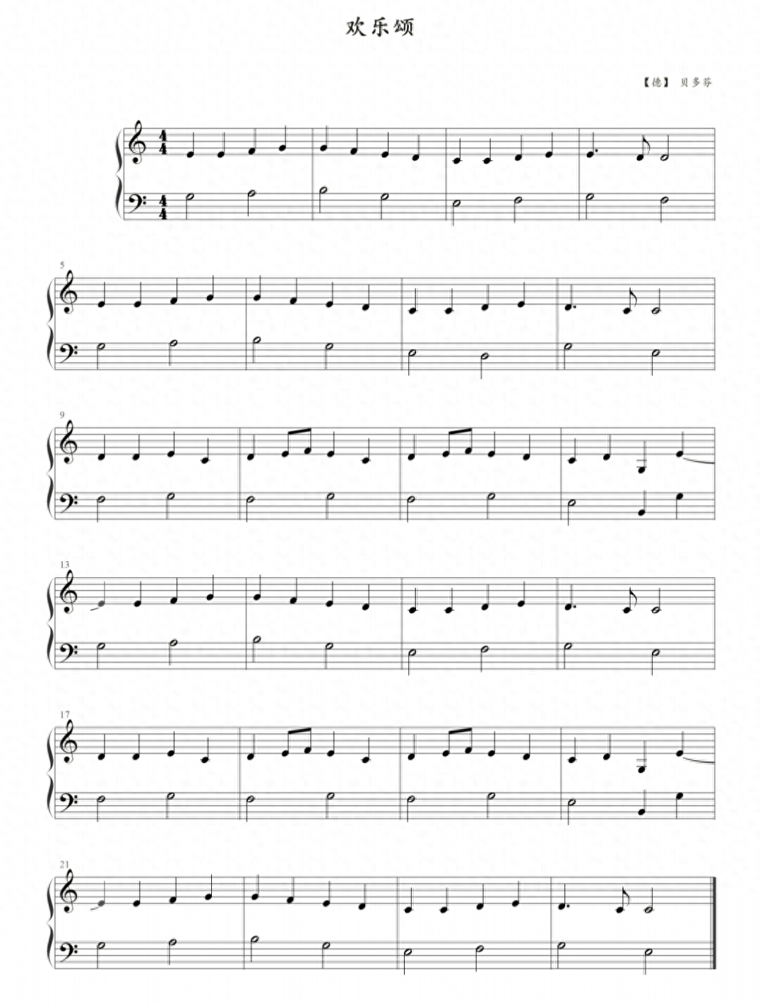 欢乐颂,钢琴谱简单版,简谱,贝多芬,曲谱分享