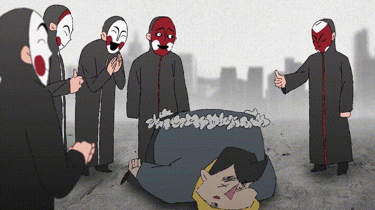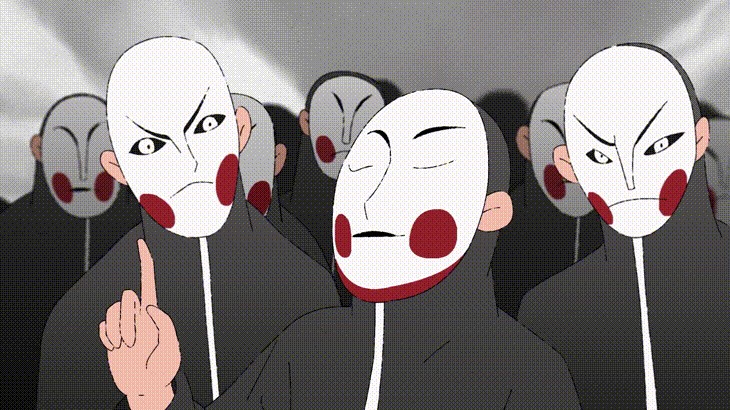 《正义使者》中那一个个带着狰狞面具的人,在现实里他们的角色可能是上进的学生、温柔的母亲、善良的义工,但在网络上,却带上了面具,享受着霸凌他人的快感。