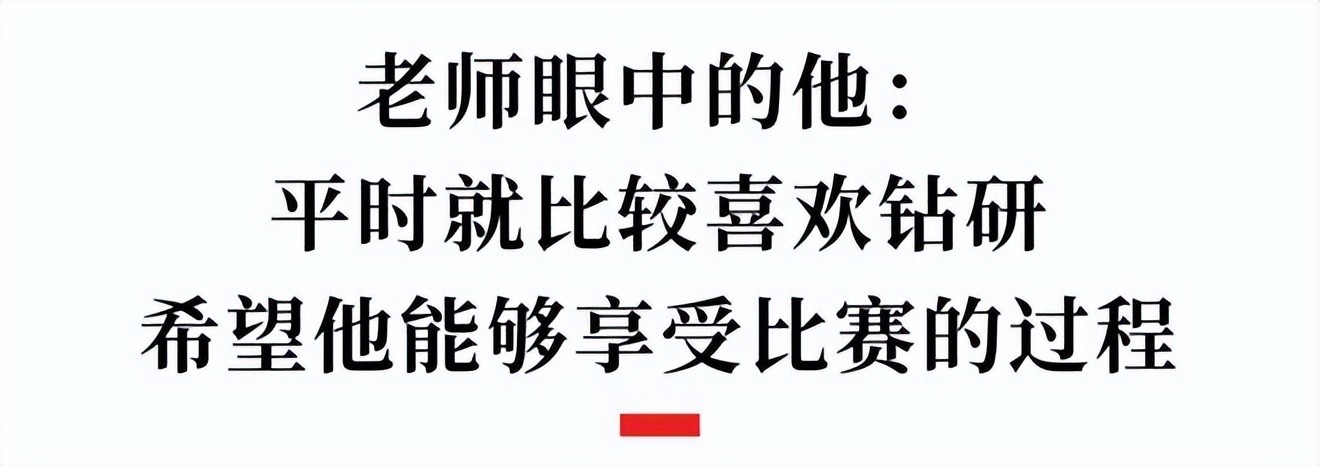 作为班主任的刘老师谈到:“杨荣泰是个比较踏实、认真的同学,什么事情交给他,都是比较放心的。他的数理化成绩尤其突出,逻辑思维也非常强,还担任过化学课代表,平时就非常喜欢和同学们钻研分享物理题这些,希望他能够享受比赛过程,帮助四川队取得理想的成绩。”