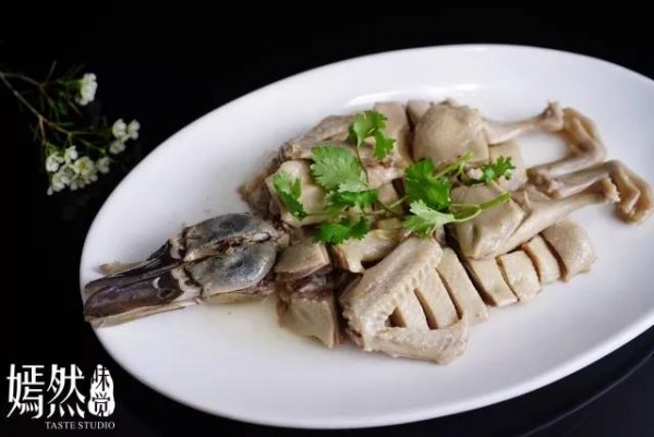白灼是东莞菜式中最常用的烹煮方式,呈现食材的自然滋味。经白灼煮熟的青头鸭不仅没有膻味,反而味道鲜美。