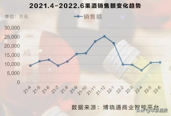 虽然品牌仍旧分散小众,但是果酒需求市场不断升温,线上销售持续增长。根据博晓通商业智能平台的统计,2021年4月到2022年6月,在主流电商平台(淘宝、天猫、京东、苏宁)和垂酒类电商酒仙网,果酒销售总额是20.3亿元,销售量累计1.97万吨。目前果酒品类的增长同比超过101%,虽然2022年3-5月的电商规模受到疫情影响,物流配送不便,但果酒的增速还是超过去年同期水平。