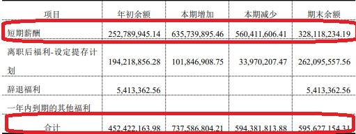 截至2019年上半年末,山西汾酒应付职工薪酬5.96亿元,同比增加1.43亿元,其中短期薪酬期末余额3.28亿元,同比增加7532.83万元;支付给职工以及为职工支付的现金5.45亿元,同比增加1.07亿元。